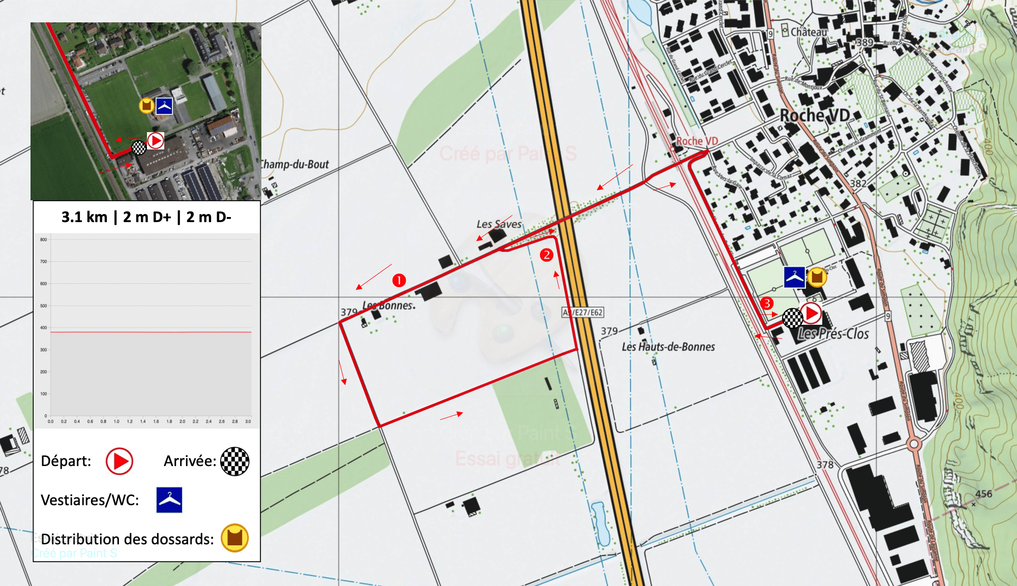 Ecoliers (2010 à 2017) : 3’050 m – Dénivellation : +2 -2 m. Départ à 18h20.