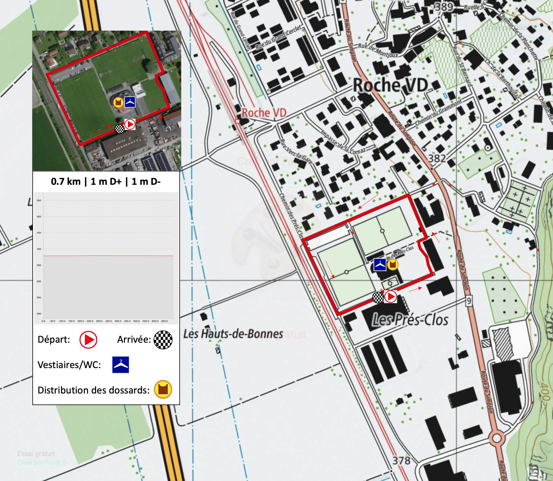 Minis (2018 et plus jeune) : 700 m – Dénivellation : +1 -1 m. Départ à 18h.