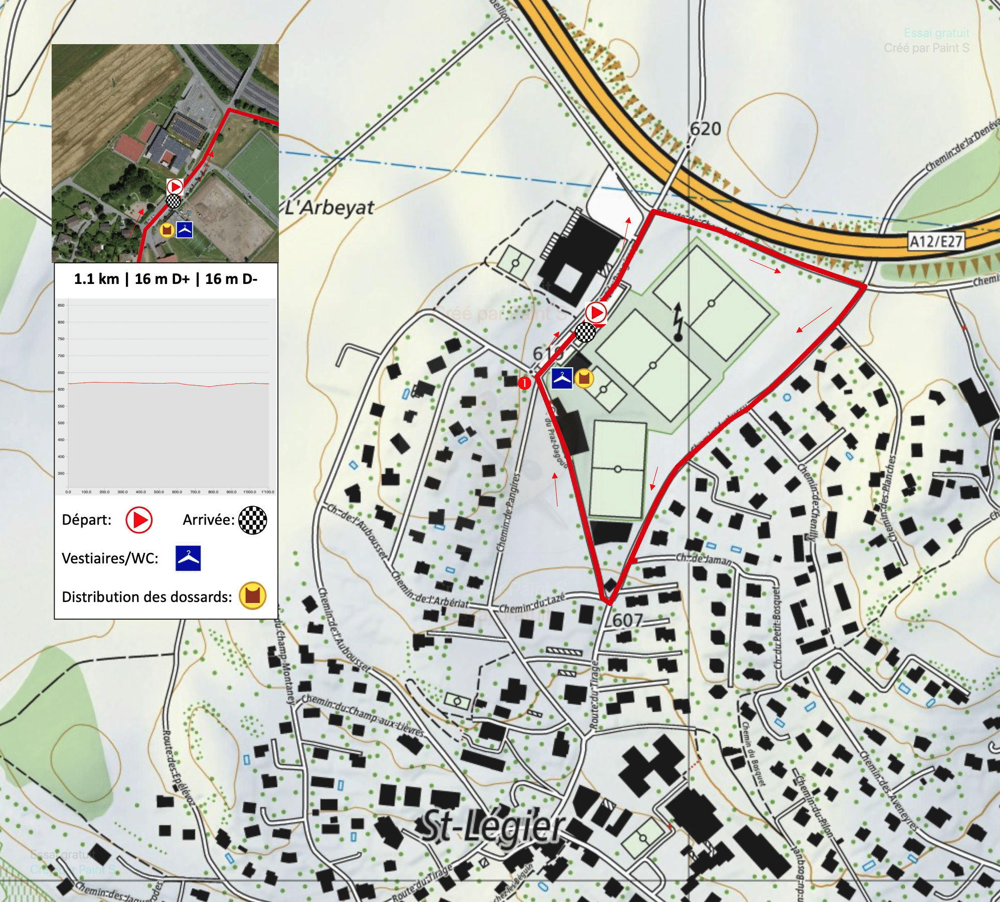 Minis (2018 et plus jeune): 1’110 m – Dénivellation : +16 -16 m. Départ à 18h.