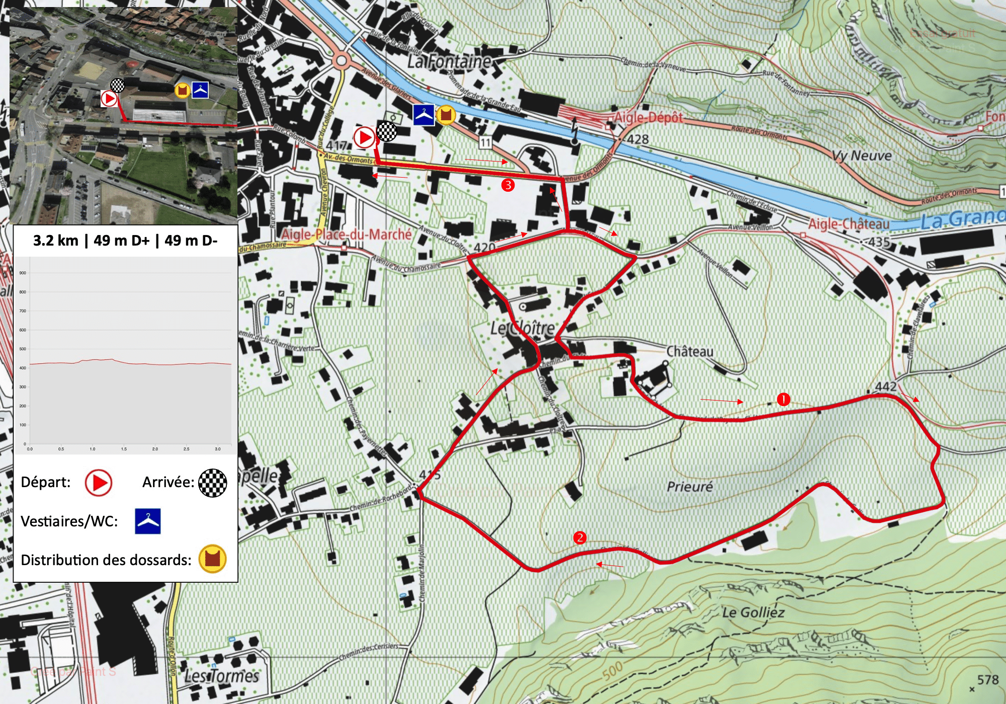 Minis (2017 et plus jeune) : 1’320 m – Dénivellation: +13 -13 m. Départ à 18h00.